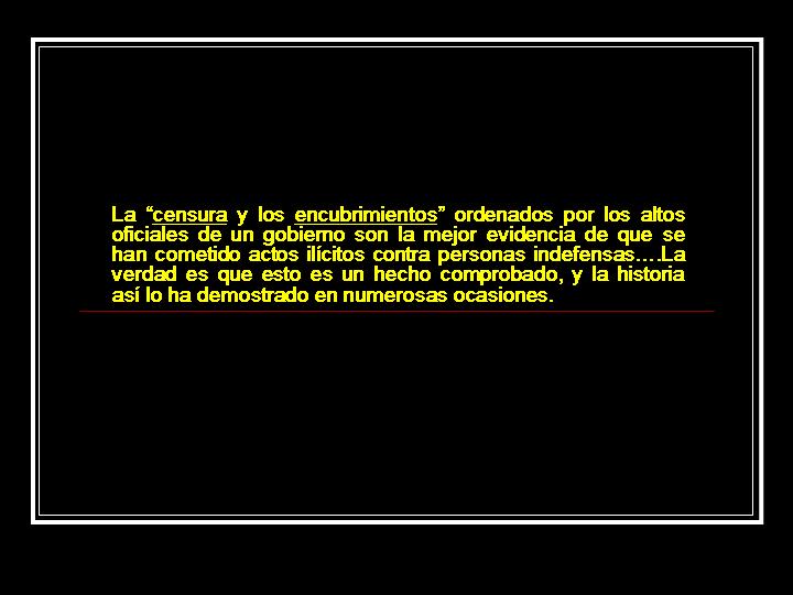 6. Desde los años ochenta funcionarios del gobierno Federal (o "Agentes") han estado difundiendo rumores en los Estados Unidos alegando que el ex-Presidente Ronald Reagan
