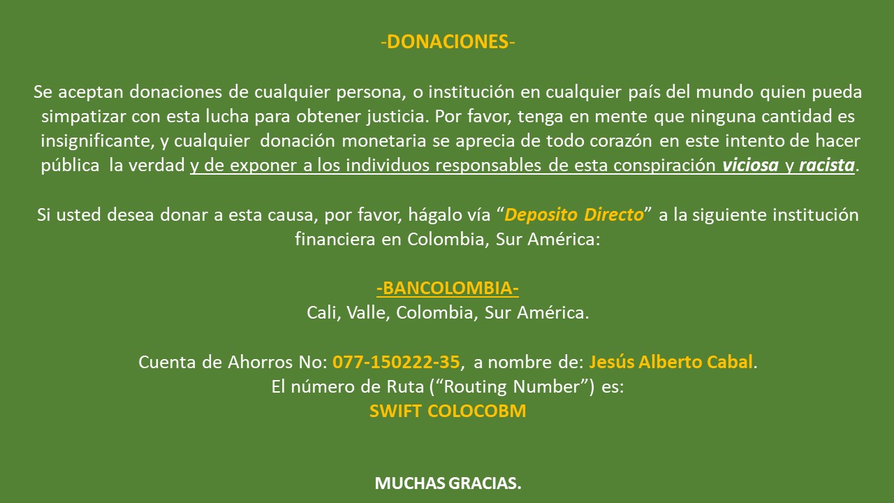 Señoras y señores, les sugiero que estos hechos son sin duda alguna evidencia contundente de la existencia de una "conspiración criminal" masiva y descarada en contra de "Jesús Alberto Cabal".