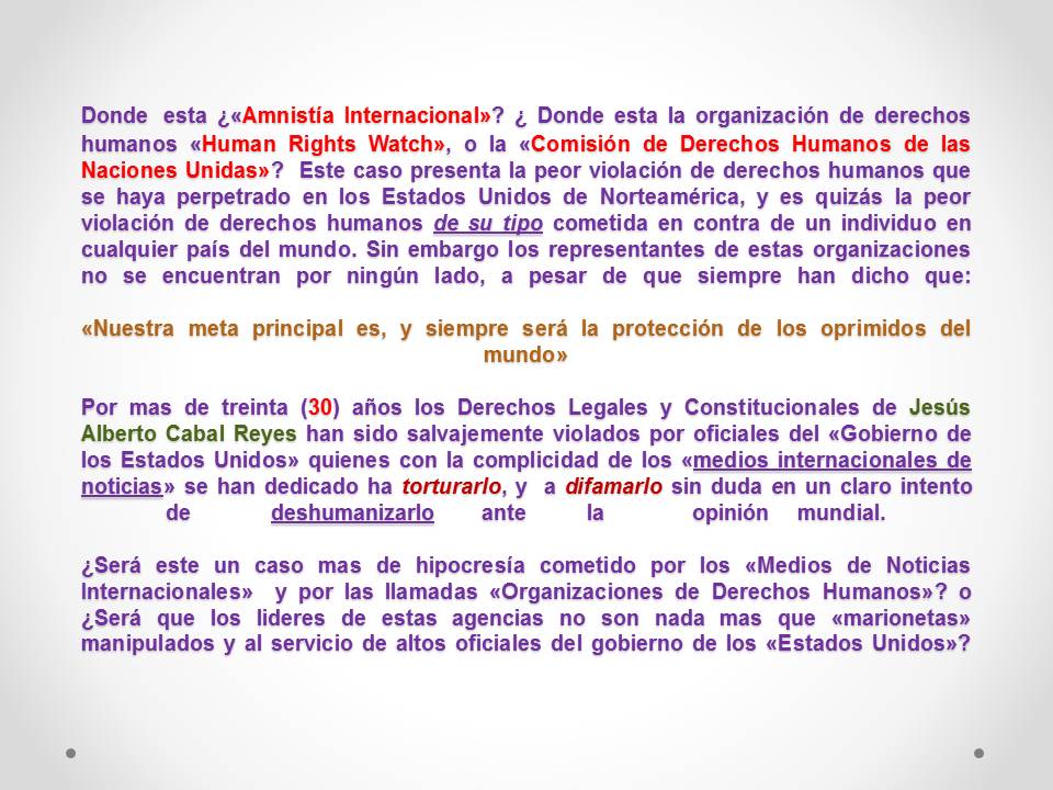 E. ADEMAS, ES UN HECHO DE QUE EL EX-PRESIDENTE "GEORGE W. BUSH" TENIA INTENCIONES DE GENERARLE PROBLEMAS LEGALES A JESUS ALBERTO CABAL COMO SE DESCRIBE A CONTINUACION: